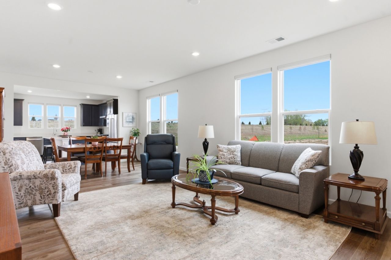 Fantastic MEADOW RESALE LESS THAN ONE YEAR OLD! No need to wait for the builder to deliver when you can move into this better than new home, and enjoy all the neighborhood has to offer this summer! Priced thousands and thousands below new construction. Fantastic oversized lot with no one next to and no one behind; siding to 12.69 acre green space, and backing to 8.79 acre green space. This one is special with upgraded exterior, upgraded cabinets, and island kitchen with quartz counter tops. Electronic air cleaner on furnace. Loads of closet space and conveniently located den could be guest room. Open and bright great room/dining room open to kitchen. Mudroom entry from garage and split bedrooms for privacy. Many windows with southern exposure for sunny days year-round. Oversized garage with half-car bump out for storage. This one is beautiful and neutral and ready for your enjoyment. Hurry before it's history, because there won't be another one at this fantastic price. (Note that although this home is within school district boundaries, it is exempt from the district, and no occupants are eligible for school district services.)