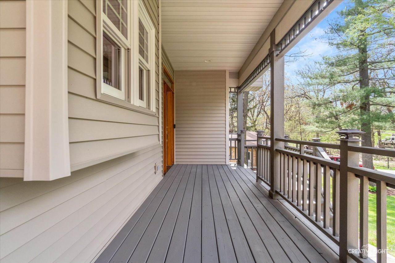 Nestled on a tranquil, private lot yet just minutes from in-town conveniences, this exquisite custom country retreat - completely rebuilt in 2012 - blends refined comfort with picturesque river views. Meticulously landscaped grounds unfold with tiered plantings, a deck, two stamped-concrete patios, a screened gazebo perfect for morning coffee or evening relaxation, and a stone fire pit framed by winding stone walkways, and views of the Fox River. Inside, warm hardwood floors span across the main level, where a stone fireplace with gas logs anchors the great room in cozy elegance. The well-appointed kitchen is ideal for everyday meals as well as entertaining, and features abundant oak cabinetry, stainless appliances, a double oven, and a generous walk-in pantry. The main-floor primary suite is a private sanctuary with a walk-in closet and a spa-like bath offering double sinks, a whirlpool tub, and a separate shower. Extra-wide stairs descend to an airy walk-out lower level with above-ground windows in every room, adding brightness to an additional family room, three bedrooms, a private office, and a full bath. Built-in shelving lines an expansive storage area. From the main floor, walk-up to a roughed-in attic ready to be finished for future living space. Practical amenities include an oversized heated three-car garage (the third bay with an extra-high ceiling), main-floor laundry with plentiful cabinetry, a mudroom and powder room. An outdoor storage shed for additional storage. Impeccably and consistently maintained, this home offers a rare combination of polished indoor living and thoughtfully designed outdoor spaces.
